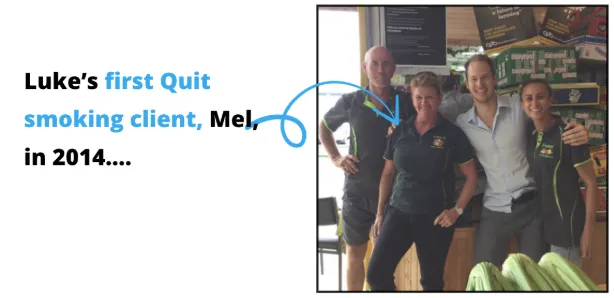 Luke's first client was a woman named Mel, whom he met at a fruit shop. He asked if she wanted to quit smoking. She said yes.